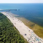 Położony przy plaży HEVENIA Deluxe apartament z bocznym, kojącym widokiem na las wydmowy Mrzeżyno jest usytuowany w plażowej dzielnicy, 350 metrów od Zejścia Na Plazę i 2 km od Muzeum Lotnictwa i Technik Militarnej. W apartamencie Goście mogą zrelaksować się przy basenie lub odwiedzić Port morski Mrzeżyno, który jest w odległości 5 min spacerem.